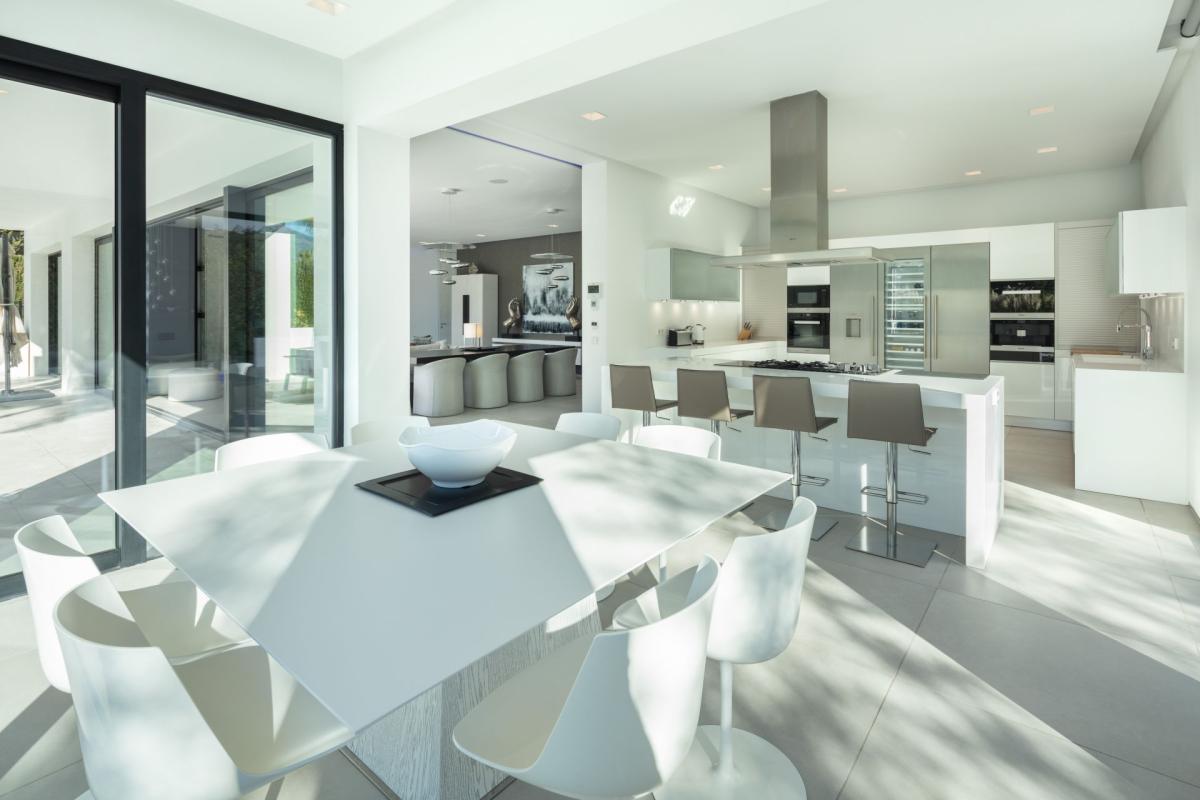 A striking modern masterpiece for sale in the heart of Nueva Andalucia, boasting of a privileged sought-out location and top class on-site facilities. A fantastic new-built home comes complete with everything for the modern-day family, contemporary design and style, set in an enviable location. The area offers a wealth of walking distance amenities, from restaurants and bars, to sports facilities, high-end health clinics, international schools and specialty shops. Distributed over 3 levels, this large villa boasts of an airy open plan living, plenty of natural light and a private backyard oasis complemented with a salt water pool. 5 sizeable bedrooms, each one complete with their own en suite bathrooms and fantastic views either towards the garden or the panoramic views. Other top class on-site facilities include a private indoor gym, a fully equipped entertainment space with bar, cinema and games area. To enjoy the fantastic climate and lifestyle of Marbella, Aloha 104 also has an ample solarium with jacuzzi and plenty of different outdoor lounge spaces. The property also includes generous parking for total of 5-6 cars.
