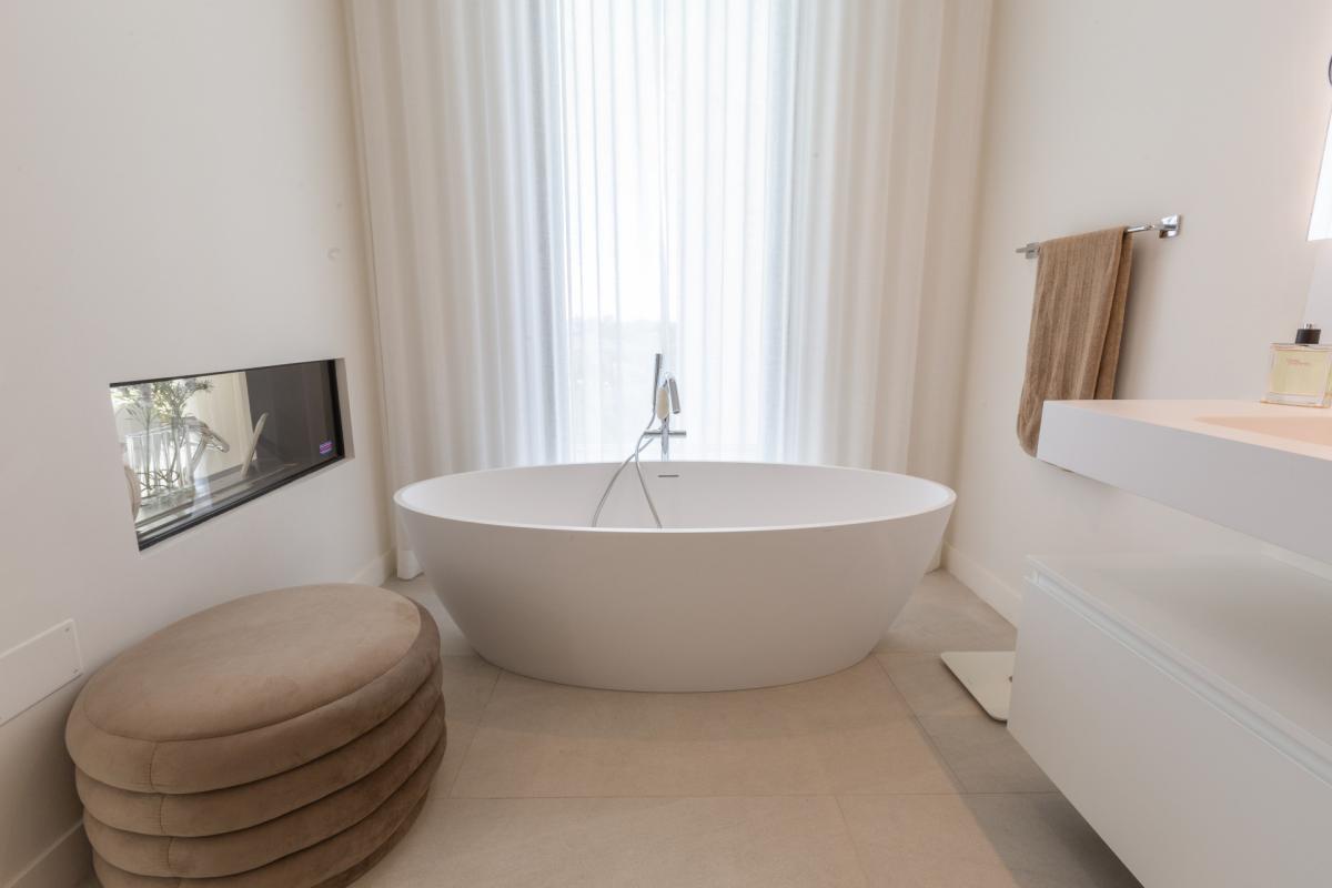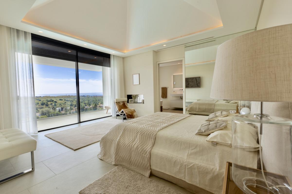 Brand new contemporary villa in Los Flamingos Golf urbanisation, with spectacular sea and golf views, designed by the architect Carlos Lamas, with modern architecture and original design. Situated in a very private and quiet street.With a striking entrance door, from the moment you enter the hall you can enjoy the panoramic sea views. The villa has been built on three floors.On the ground floor there is a large living room with fireplace, dining room and modern kitchen, with floor to ceiling windows and access to large open and covered terraces, with a beautiful infinity pool with sun beds and relaxation areas, a bedroom with ensuite bathroom and guest toilet. There is a lift to all three floors.On the first floor there are 3 bedrooms with 3 bathrooms en suite. The master bedroom has a large dressing room and a terrace with panoramic sea and golf views. In the basement there are two bedrooms with windows and natural light, two en suite bathrooms, wine cellar and a large multipurpose room. Garage for two cars.Do not miss the opportunity to see this excellent property built with excellent qualities and with panoramic sea and golf views.