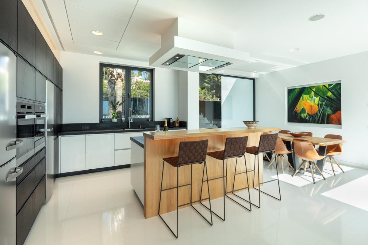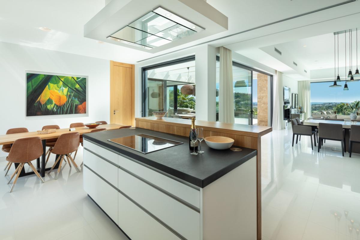 Situated in the prestigious neighbourhood of La Cerquilla, nestled between three world-class golf courses, this contemporary masterpiece captures sweeping golf to sea views, and has been designed with high quality materials and finishes. A sophisticated entertainer’s retreat, this 5-bedroom estate seamlessly integrates indoor and outdoor living while showcasing masterful and modern details. Floor-to-ceiling glass walls surround the living areas highlighting the property’s main attraction – breathtaking views of the surrounding nature. Set on a unique elevated position and enjoying complete privacy, the beautifully marbled entry leads into the open plan living spaces beaming with natural light. A contemporary kitchen complete with an expansive breakfast bar, faces the formal dining room and overlooks the ample terraces and infinity pool. The elegant master boasts of custom designed furniture, his and hers en suite bathroom with a standing tub and opens to the private terrace offering magnificent panoramic views. Other home features include a fully convertible indoor gym room, sauna and full size private tennis court.