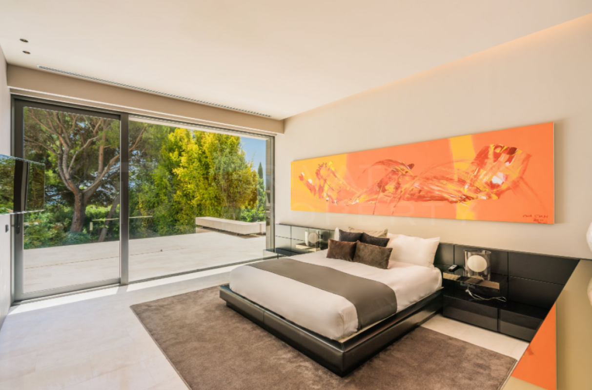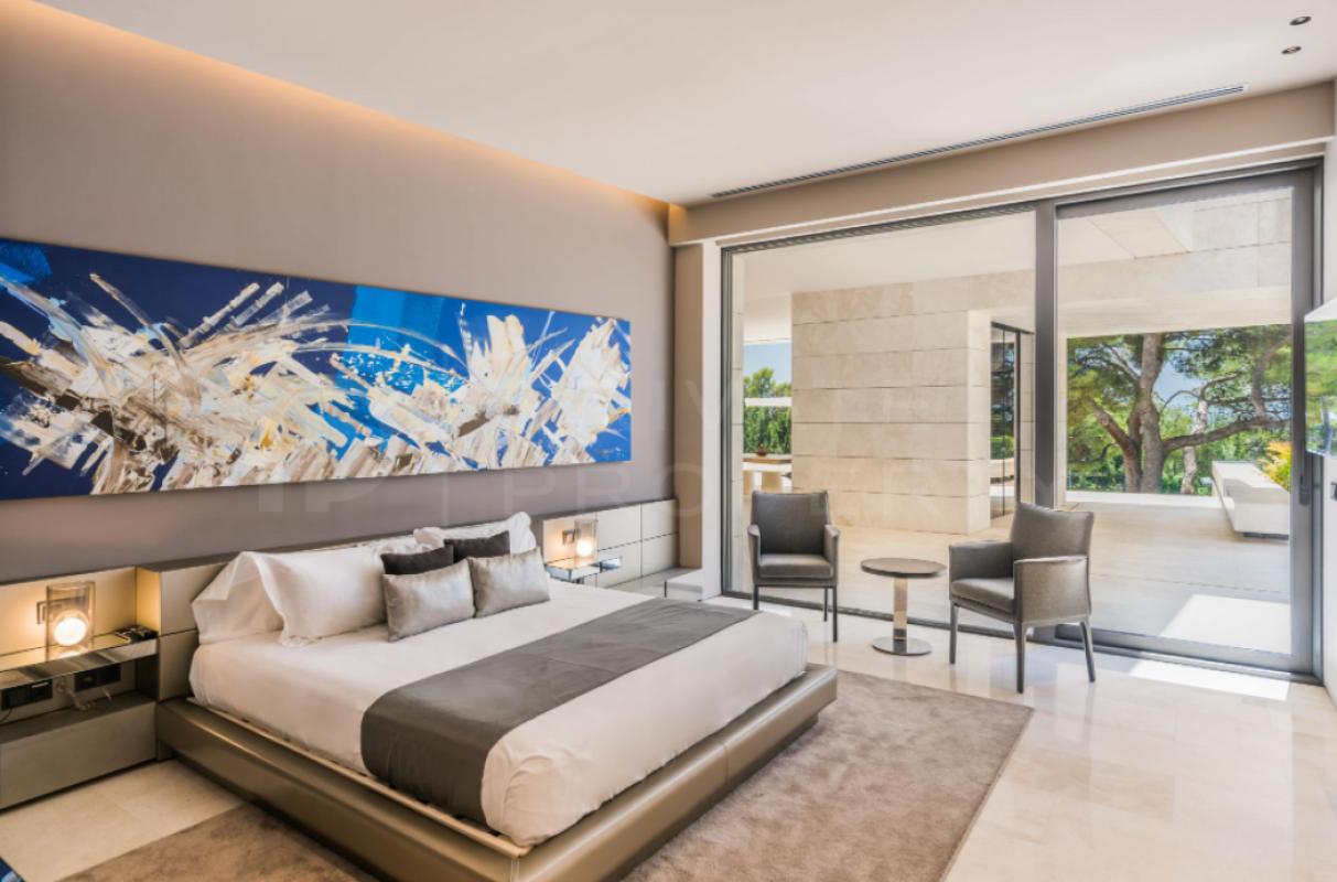 First floor; Impressive master bedroom with two walk-in closets, his and hers bathroom, private terraces with astonishing views overlooking the garden, the pool, the mountain and the golf course. There are two further ensuite bedrooms on this floor.