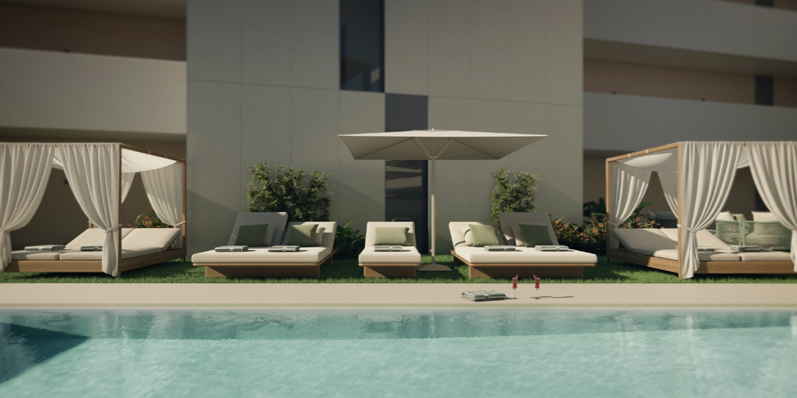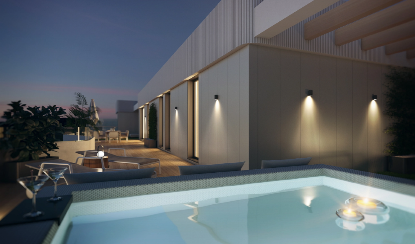 The Laguna Suites complex has been designed to give you all the comforts you imagine: outdoor and indoor pools, solarium, spa, chillout, coworking area, gym... all the services of a hotel in your own home.
