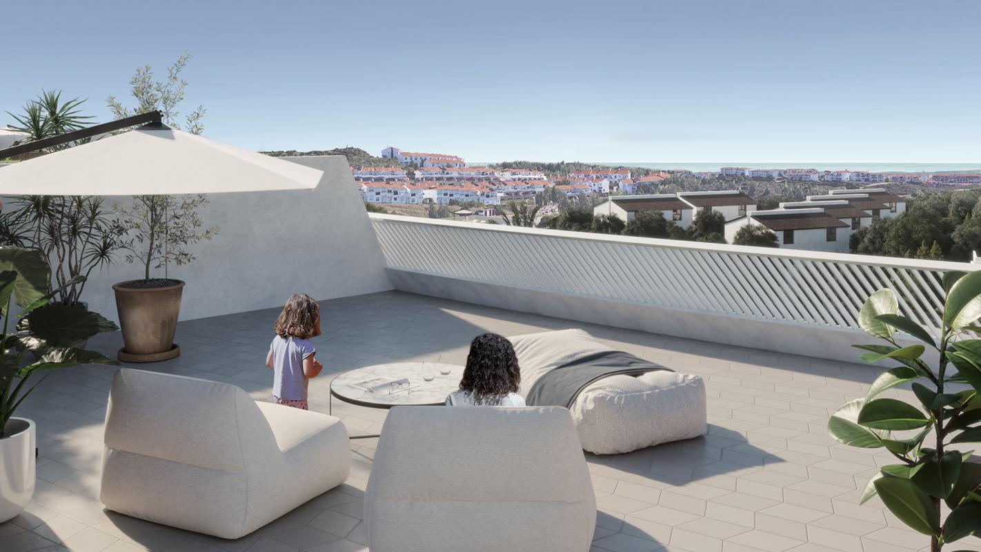 The apartments have 2 or 3 bedrooms, all have large terraces with a lounge area. There is a spacious community solarium from where you can enjoy the beautiful Mediterranean sunsets. All properties also include a storage room and parking space.