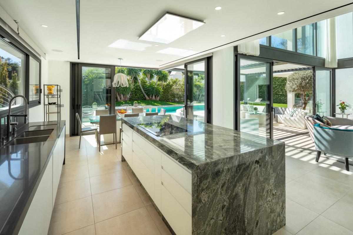 This contemporary villa provides the ultimate in beach side luxury living. Located in the beautiful beachside resort of Puerto Banus, 200 meters walking distance to the beach, close to shops and nightlife of Puerto Banus and short driving distance from Marbella centre and San Pedro. Designed across 3 floors, all accessible through the private elevator, the property offers 7 bedrooms and 7 bathrooms each with an outdoor terrace.