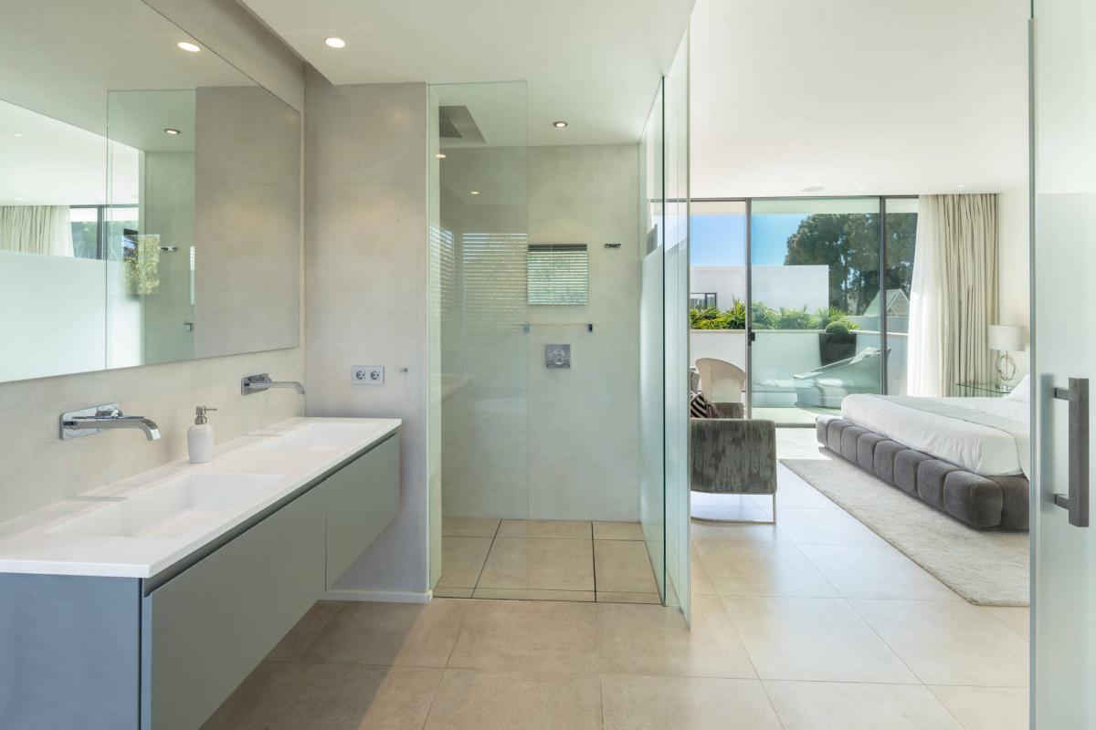 The generous master suite is completed with a walk-in shower, stand alone bath and an expansive walk-in wardrobe. A large outdoor sun terrace overlooks the pool and garden with access to the roof terrace. An expansive area with 3 separate terraces, giving you even more options for sunbathing and dining, while enjoying the breathtaking Sea and Mountain views. The basement has been converted into the perfect relaxation area, equipped with a cinema room and a games lounge.