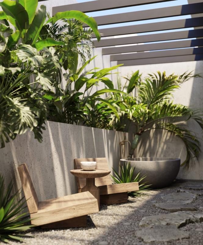 Villa Nusa is a totally renovated 4 bedrooms and 4 bathrooms villa with a high attention to details, high qualities and tropical – balinese design with a Scandinavian touch which makes it a perfect holiday home. Located in the lower part of Nueva Andalucia, few minutes walking to the famous harbour, Puerto Banus and its sandy beaches, it is surrounded by coffee shops, restaurants, supermarkets and just a short drive to the best golf courses of the Valley.No detail was left for a chance: tropical gardens with various relaxing corners, open plan kitchen with Gaggenau appliances, organic material such as stone, natural wood and micro-cement are all creating the cozy resort feeling at home. Due to location and features, Villa Nusa makes the perfect home for your family as well as a high rental potential.