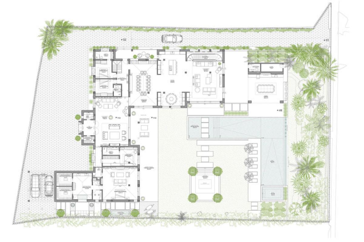 This state-of-the-art retreat boasts of impeccable design set on a 2600m2 plot, in the prestigious La Cerquilla residential community, with stunning views to several golf courses, La Concha and the Mediterranean.